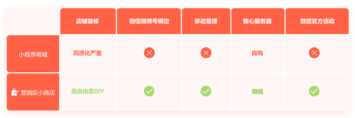营销版小商店由微信官方组件支撑,打通微信视频号,附近小程序等公域流量,触及包括搜索、扫码等数十微信入口,让传统商家转型线上更加便捷